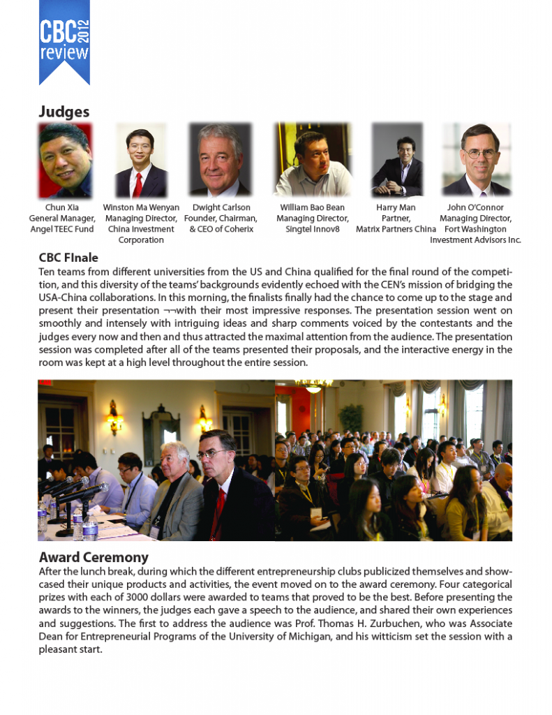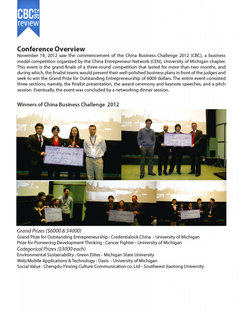Thank you for your interest in China Business Conference 2012, held by China Entrepreneur Network at University of Michigan on November 18th at Rackham Building! As it concluded as a great success, we would like to share a special review of this year’s CBC with some exciting highlights.
